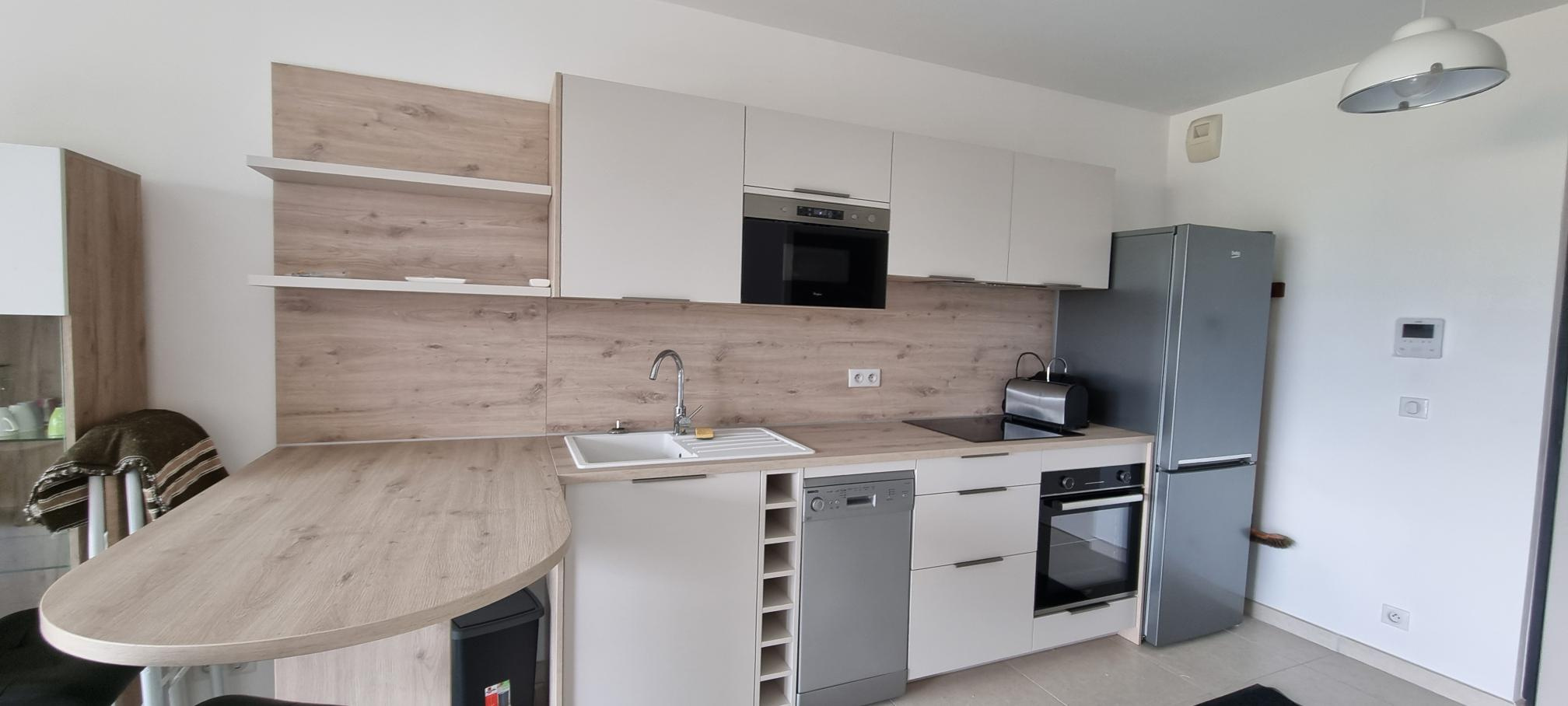 Dans un immeuble sécurisé, situé en centre ville, studio neuf entièrement meublé, composé d'une pièce principale avec coin cuisine, salle d'eau avec wc.