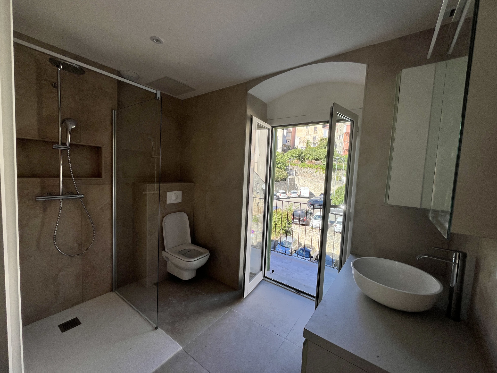 - Une salle d'eau moderne avec WC et accès sur balcon.