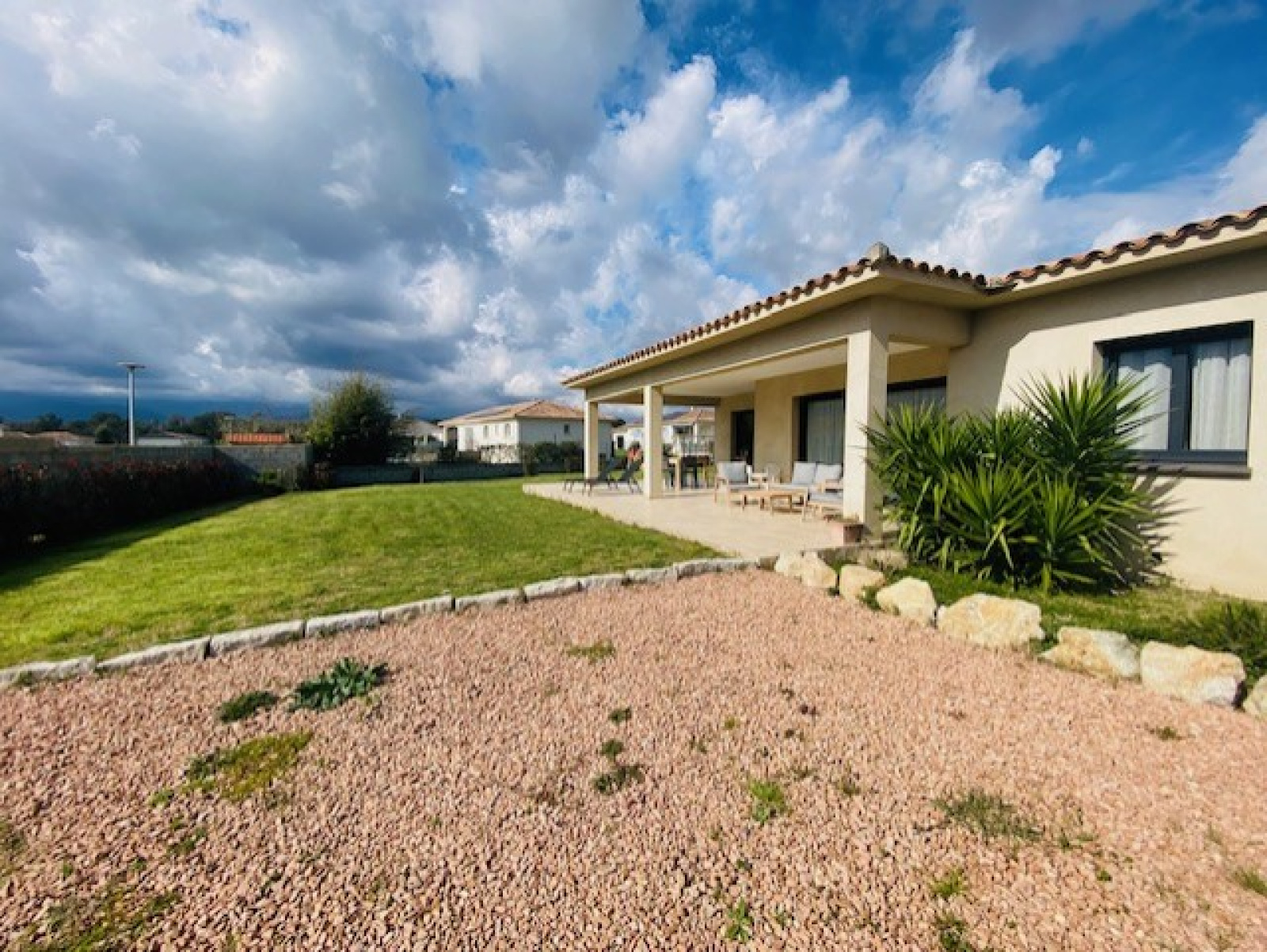 Idéalement située à proximité de toutes commodités (commerces, écoles, administrations) cette villa moderne d'une superficie d'environ 137 m² habitable est composée d'une entrée donnant sur un spacieux et lumineux salon/séjour, une cuisine ouverte aménagée et équipée, un cellier/buanderie et une salle à manger s'ouvrant sur une terrasse couverte.